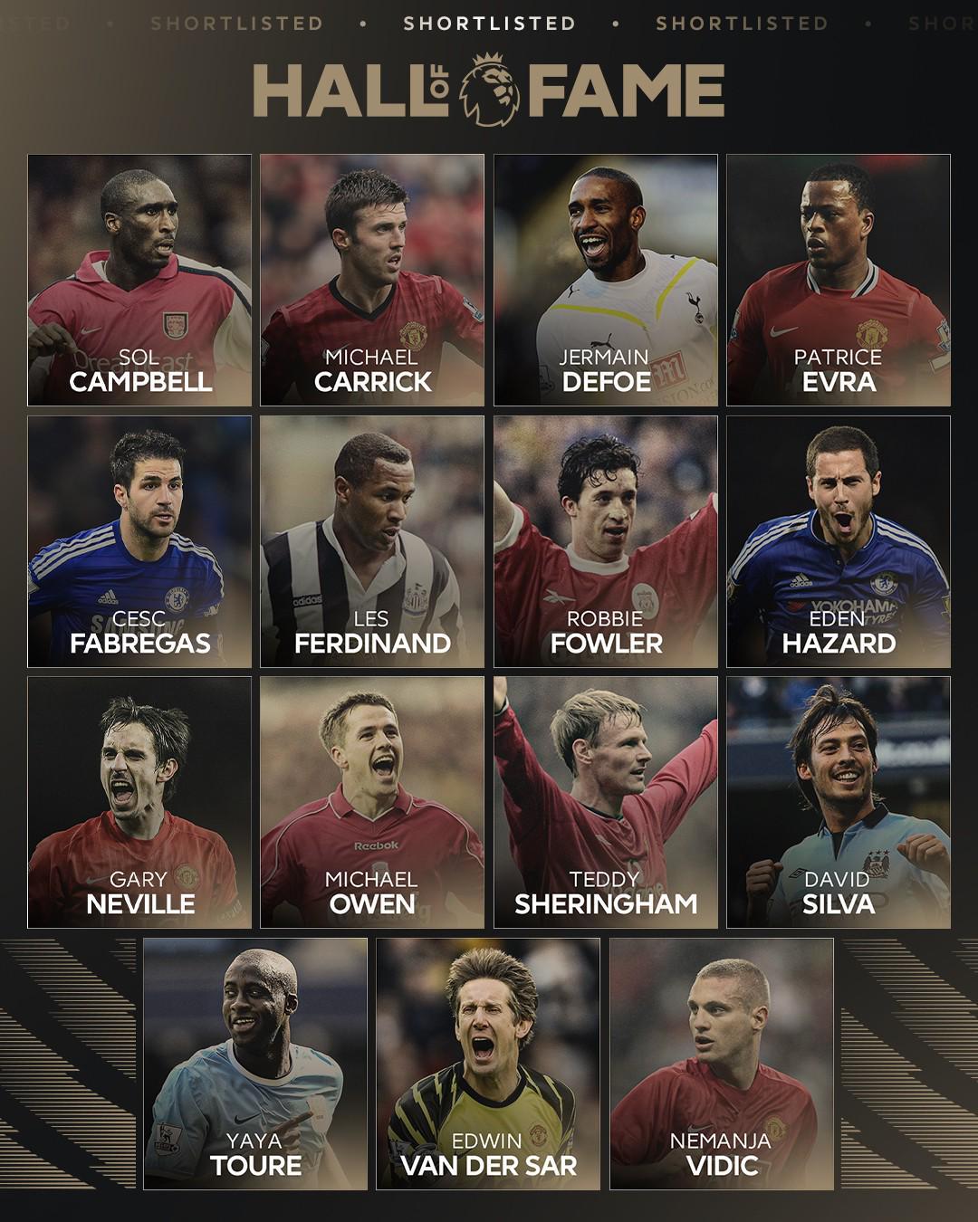 2025英超名人堂候選15人:阿扎爾、歐文、小法等