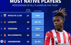 本土球員占比高,畢巴居首,皇社巴薩緊隨其后。