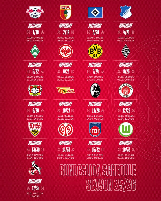 拜仁新季德甲:第3戰(zhàn)漢堡,第7&24輪國家對(duì)決。